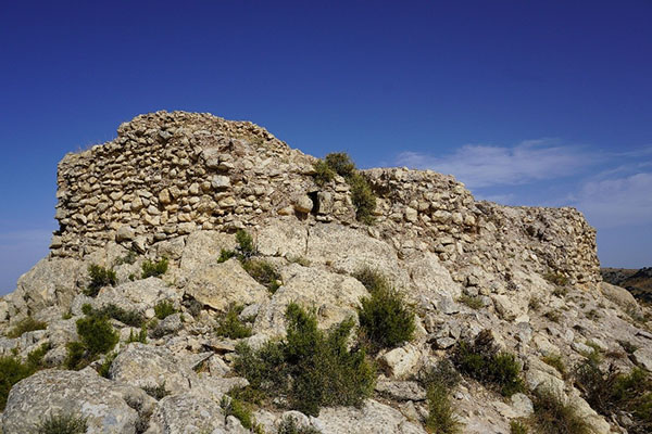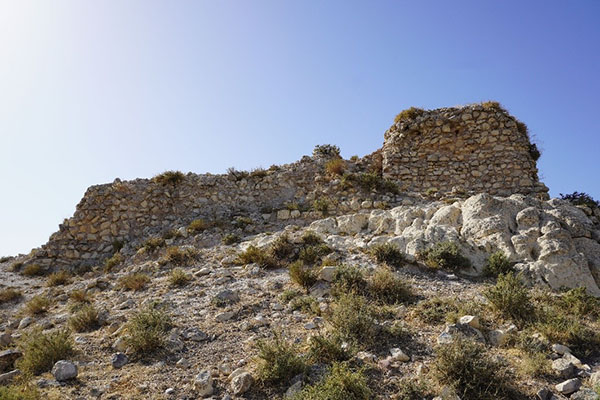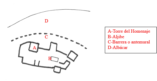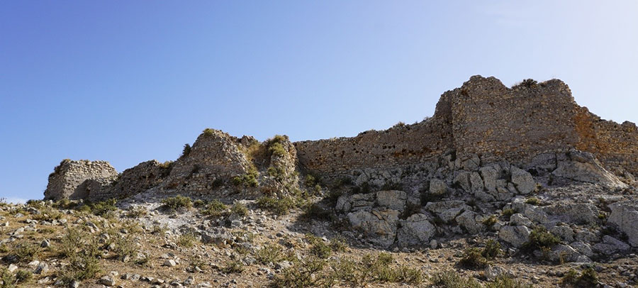 Castillo roquero de planta irregular con, al menos, dos recintos. El recinto superior (celoquia), más pequeño, y el recinto inferior, amplio y situado en su vertiente Norte, que podría funcionar como albácar. Del recinto inferior apenas queda nada. Del recinto superior queda especialmente la parte Norte, puesto que la mayor parte del lado contrario se ha desmoronado ladera abajo. La ladera meridional es muy empinada, incapaz de albergar ningún elemento ni obra, y es también, la más deteriorada. El recinto superior tiene planta poligonal alargada reforzada con cubos cuadrangulares de trecho en trecho, encarada al Este-Oeste. El número de torres es difícil de precisar, debido a su rápida destrucción. El lado Norte cuenta claramente con tres, una de ellas, más grande, pudo ser el Homenaje. En el lado Sur parece que se aprecien dos más. En el lado Norte hay vestigios de un antemural. No hemos podido descubrir donde estuvo la puerta. Queda un pequeño aljibe, casi colmatado, que todavía conserva parte de su bóveda de medio cañón. La fábrica del castillo es íntegramente la mampostería trabada con mortero de cal.