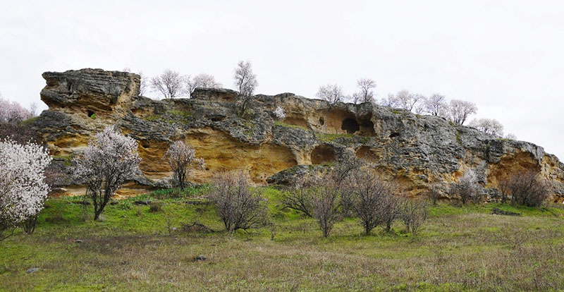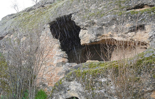 Cueva cerrada con un muro y puerta de acceso a la misma en el lado opuesto.