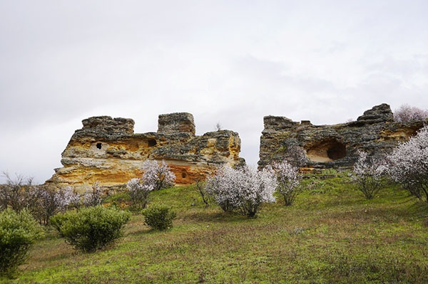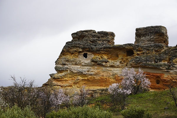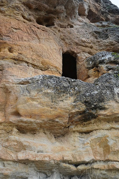 El corte en la roca se realizó para construir el camino de la ermita.