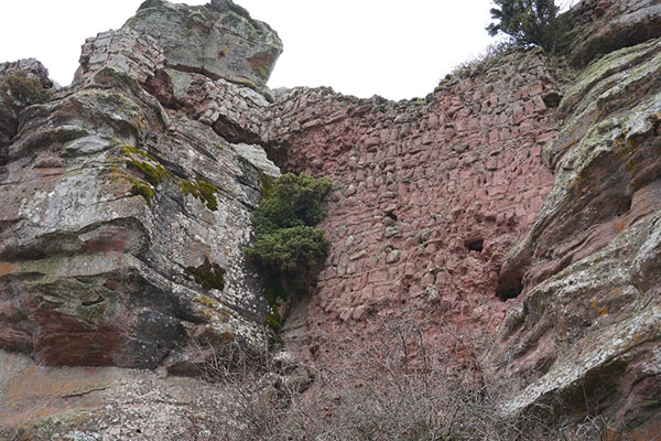 Entre las impresionantes peñas de rojizo rodeno podemos descubrir algunos muros del castillo. Debió ser un castillo espectacular, al mismo nivel que el de Peracense, a tan solo 3 km.