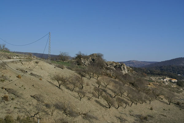 Está situado al Sureste de la pedanía de Pilas de Algaida, a tan solo 1’7 km, junto a un caminillo que se dirige hacia algunos cortijos cercanos. En cambio está muy alejado de Alhama, a más de 14 km. Parte de sus restos quedan en el interior de una finca vallada a la que no es posible penetrar.