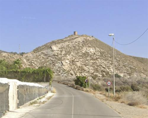 Dominando la aldea de su nombre, sobre un cerro junto al río Adra, a unos 3’5 kms. al Norte de Adra. La carretera pasa a sus pies y es sencillo su acceso, aunque no existen senderos.