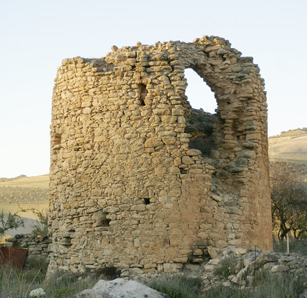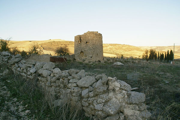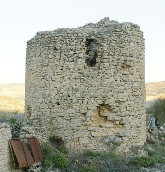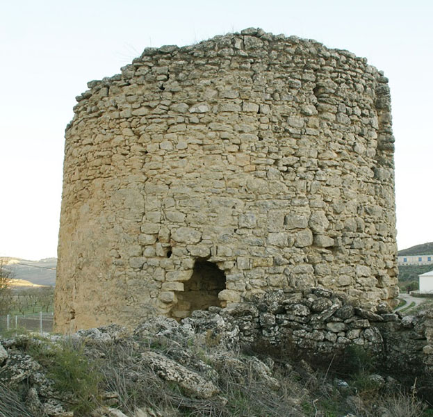 Torre de planta circular y forma cilíndrica, con fábrica de mampostería de pequeño tamaño. Su diámetro es de 7 m y se cree que tuvo tres plantas. El gran vano del Sureste podría ser la entrada, a 4 m de altura. Conserva algunos restos de enlucido. La habitación interior tiene planta hexagonal, con lados de 1.80 metros, cubierta por bóveda de cañón, también de seis lados, de la que se conservan sus arranques a unos dos metros de altura. Al Noreste se sitúa la escalera de subida a la terraza, con su base junto a la puerta de entrada. De esta escalera quedan, en el paramento Sur de la torre, los testigos de los agujeros que han dejado los rollizos volados sobre los que apoyaba. Parece ser que esta torre disponía de un pequeño recinto amurallado. Por sus características probablemente fuese una torre de alquería, con función tanto defensiva como de protección a la población que viviría en torno a ella.