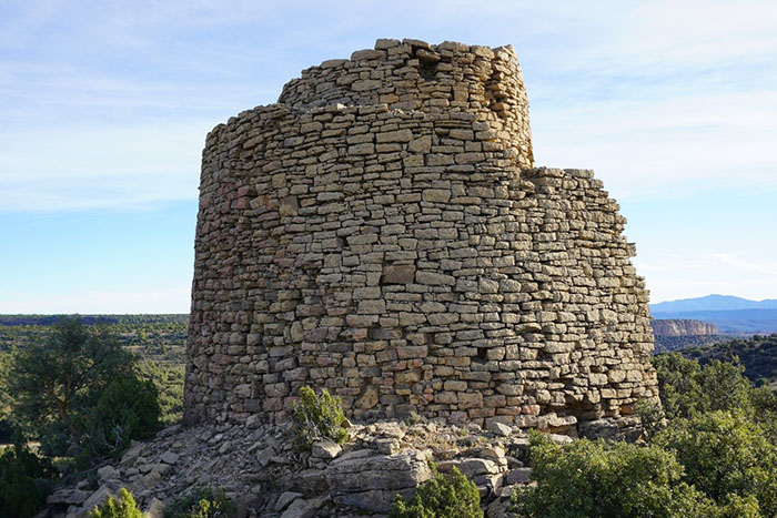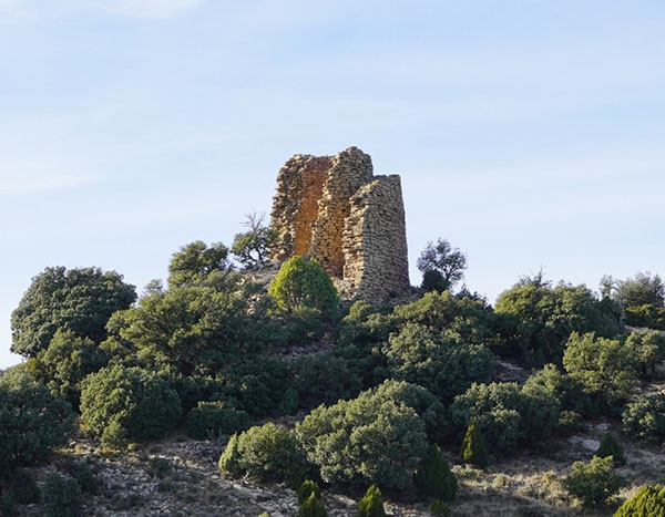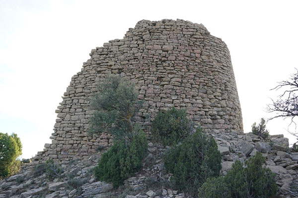 Torre con una extraña planta circular y forma troncocónica (parece una torre dentro de otra) reforzada por un recinto previo que no encontramos. Su diámetro es de 7 m y su altura conservada, también. Está construida con lajas calizas de grandes dimensiones, encarando la parte lisa hacia el exterior y ajustando perfectamente las piedras, trabadas con mortero. Los muros tienen un espesor de más de un metro. No han quedado vanos ni vestigios de accesos.