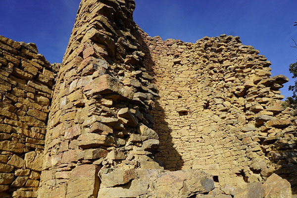 En grave peligro de colapso. Da la impresión de que puede venirse abajo en cualquier momento. La mitad meridional de la torre se derrumbó hace años y ahora es un montón de piedras desparramado por la ladera. Y en lo que ha quedado en pie la caída de piedras debido a las inclemencias climáticas es constante. Algunos autores hablan de la existencia de un recinto, recinto que no tuvimos la suerte de distinguir debido a su destrucción total.
